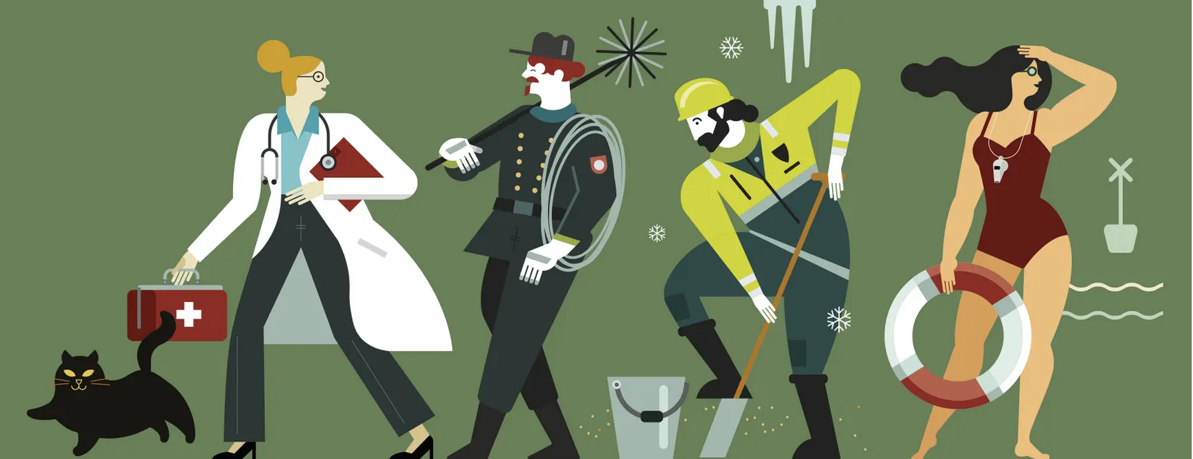 Her vises ulike illustrasjoner og som er laget til bruk på web og brosjyrer og annet informasjonsmateriell for Skadeforebyggende forum. Illustrasjonene er laget i en ren plakativ stil med få sterke farger som gir god lesbarhet både i print og i digitale medier.